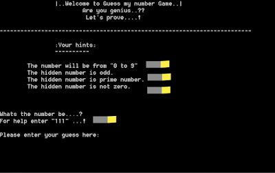 cout<<"For help enter \"111\" ...!"<<endl;