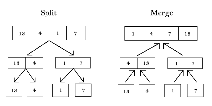 In this method, the elements are divided into partitions until each partition has sorted elements. Then, these partitions are merged and the elements are properly positioned to get a fully sorted list.